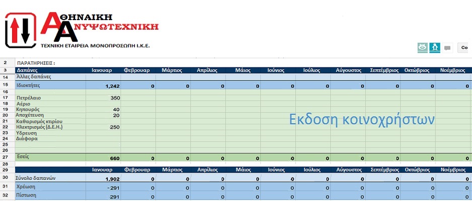 "Αναλυτικά οι λογαριασμοί της πολυκατοικίας " |